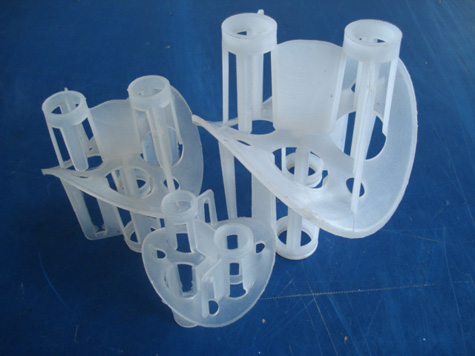 海尔环填料的构型,使之除具有通量大、压降低、耐腐蚀及抗撞击性能好等优点外,还有填料间不会嵌套,壁流效应小和气液分布均匀等优点,该填料适用于气体吸收、冷却及气体净化等过程.